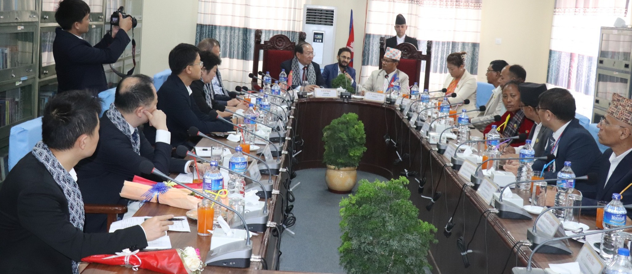 चीनको शान्सी प्रदेशका जनसभाका उपसभामुख मा. चाङ चिछुआन र लुम्बिनी प्रदेश सभाका मा. सभामुख तुलाराम घर्ती मगर विच शिष्टाचार भेट